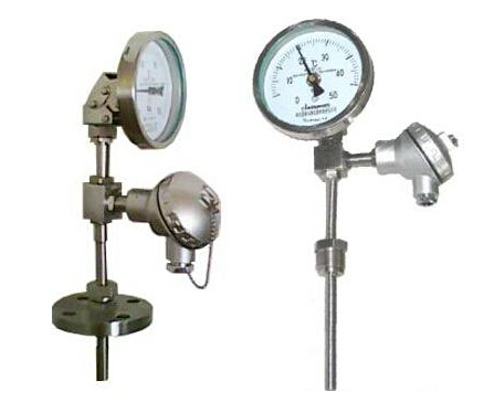 遠(yuǎn)傳雙金屬溫度計是將熱電阻或熱電偶的信號遠(yuǎn)傳功能與雙金屬溫度計就地指示功能相結(jié)合,它既能滿足現(xiàn)場測溫需求,亦能滿足遠(yuǎn)距離傳輸需求,遠(yuǎn)傳雙金屬溫度計可以直接測量各種生產(chǎn)過程中的 -40~+600℃范圍內(nèi)液體、蒸氣和氣體介質(zhì)以及固體表面的溫度測量。