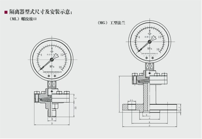 隔膜式壓力表由于采用間接測(cè)量結(jié)構(gòu),適用于測(cè)量粘度大、易結(jié)晶、強(qiáng)腐蝕、溫度較高的液體、氣體或顆粒狀流動(dòng)固體的壓力。隔離膜片有多種材料以適應(yīng)各種不同腐蝕性介質(zhì)。