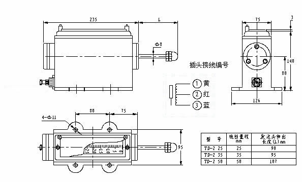 TD-2型熱膨脹位移傳感器 TD-2型熱膨脹傳感器主要用于測量汽輪機汽缸膨脹位移量,與DYX-R熱膨脹監(jiān)控儀相配合即可完成熱膨脹位移量的遠(yuǎn)傳指示、報警、恒流輸出等功能。就地指示視野大,遠(yuǎn)傳指示為數(shù)字顯示,清晰直觀。采用中頻差動變壓器式位移傳感器作為傳感